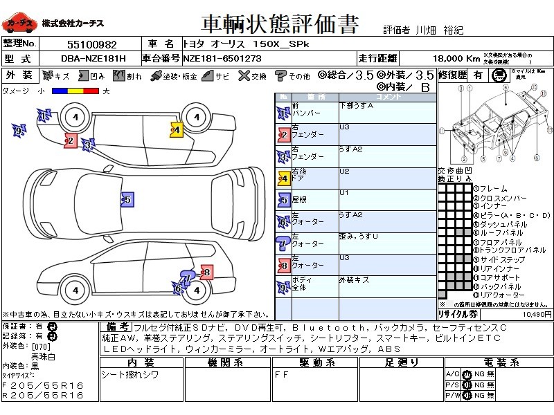 フル装備 / CD / 乗車定員(5人) / エアバッグ / 助手席エアバッグ / ABS / カーナビゲーション(SSD) / テレビ(アナログ) / 地デジTV / バックカメラ / ETC / アルミホイール(16インチ) / スマートキー / ウインカーミラー / ハイマウントストップランプ / フォグランプ /