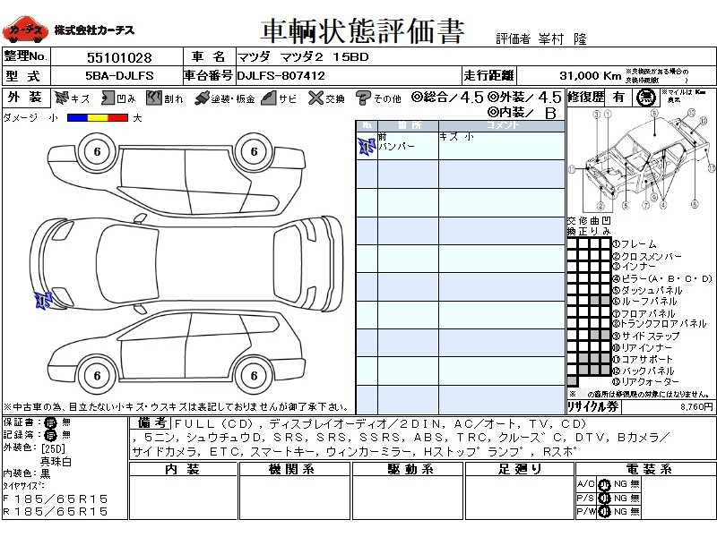 フル装備 / CD / 乗車定員(5人) / 集中ドアロック / エアバッグ / 助手席エアバッグ / サイドエアバッグ / ABS / トラクションコントロール / クルーズコントロール / テレビ(アナログ) / 地デジTV / バックカメラ(サイドカメラ) / ETC / スマートキー / ウインカーミラー / ハイマウントストップランプ / リアスポイラー /