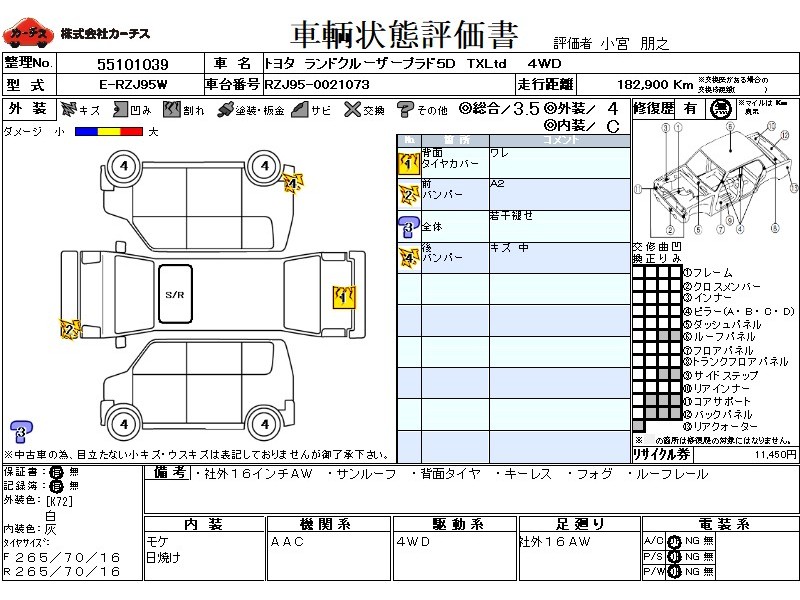 ・サンルーフ ・背面タイヤ ・社外16AW ・キーレス ・フォグ