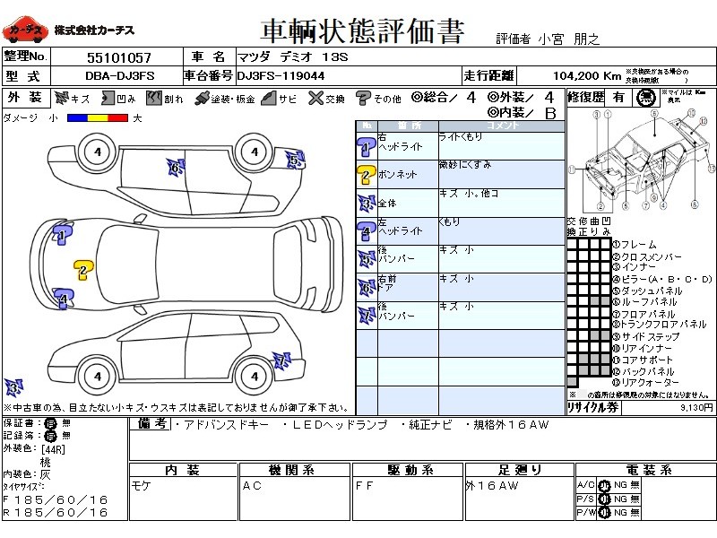 乗車定員(5人) / エアコン(マニュアル) / パワーステアリング / パワーウィンドウ / 集中ドアロック / エアバッグ / 助手席エアバッグ / サイドエアバッグ / ABS / トラクションコントロール / カーナビゲーション(オンダッシュ,SSD) / アルミホイール(社外)(16インチ) / スマートキー / ハイマウントストップランプ /