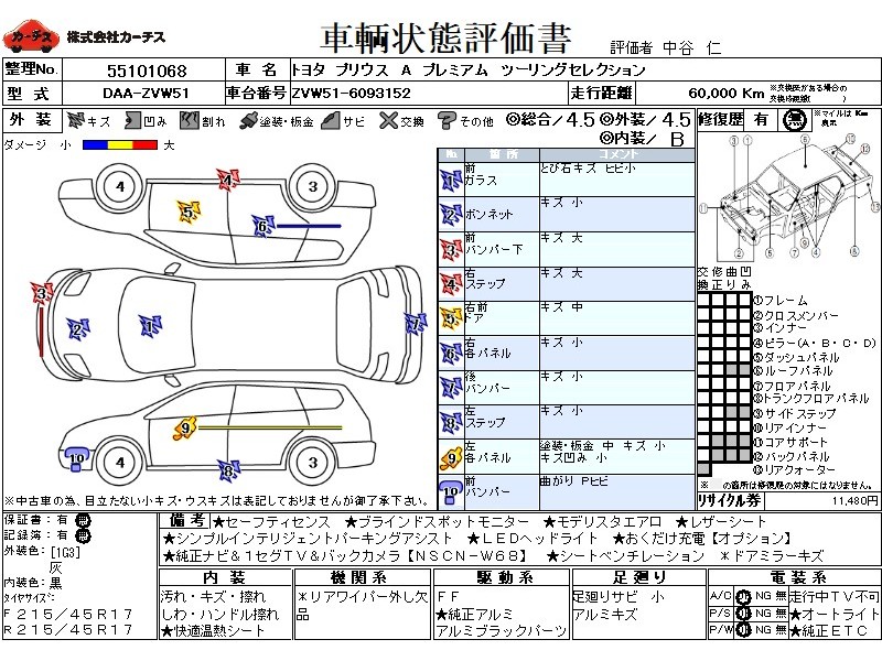 フル装備 / CD / 乗車定員(5人) / 集中ドアロック / エアバッグ / 助手席エアバッグ / サイドエアバッグ / ABS / トラクションコントロール / クルーズコントロール / カーナビゲーション(インダッシュ,SSD,2DIN) / テレビ(アナログ) / バックカメラ / ETC / アルミホイール(17インチ) / 革シート(黒) / スマートキー / ウインカーミラー / ハイマウントストップランプ / フォグランプ / フロントスポイラー(社外) / サイドスポイラー(社外) / リアアンダースポイラー(社外) /