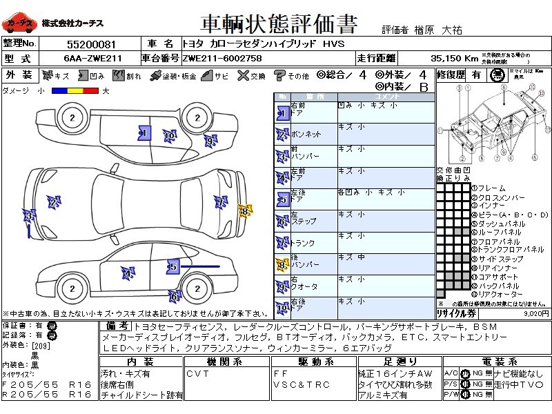 エアコン(オート) / パワーウィンドウ / 集中ドアロック / エアバッグ / 助手席エアバッグ / サイドエアバッグ / ABS / トラクションコントロール / クルーズコントロール / テレビ(アナログ) / バックカメラ / ETC / アルミホイール(16インチ) / スマートキー / ウインカーミラー /