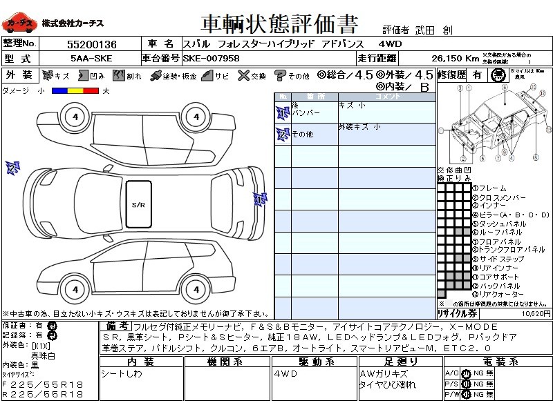 フルセグ付純正メモリーナビ!!F&S&Bモニター!アイサイトコアテクノロジー!X-MODE!サンルーフ!ブラックレザーシート!Pシート&Sヒーター!純正18AW!LEDヘッドランプ&LEDフォグ!ウインカーM!Pバックドア!革巻ステア!パドルシフト!クルコン!6エアB!スマートリアビューミラー!ETC2,0!