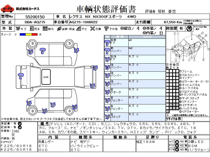 フル装備 / CD / 乗車定員(5人) / 集中ドアロック / エアバッグ / 助手席エアバッグ / サイドエアバッグ / ABS / トラクションコントロール / クルーズコントロール / カーナビゲーション(オンダッシュ,SSD) / テレビ(アナログ) / 地デジTV / バックカメラ(サイドカメラ) / ETC / アルミホイール(18インチ) / サンルーフ / 革シート(その他) / スマートキー / ウインカーミラー / ハイマウントストップランプ / パワーバックドア / フォグランプ / リアスポイラー /