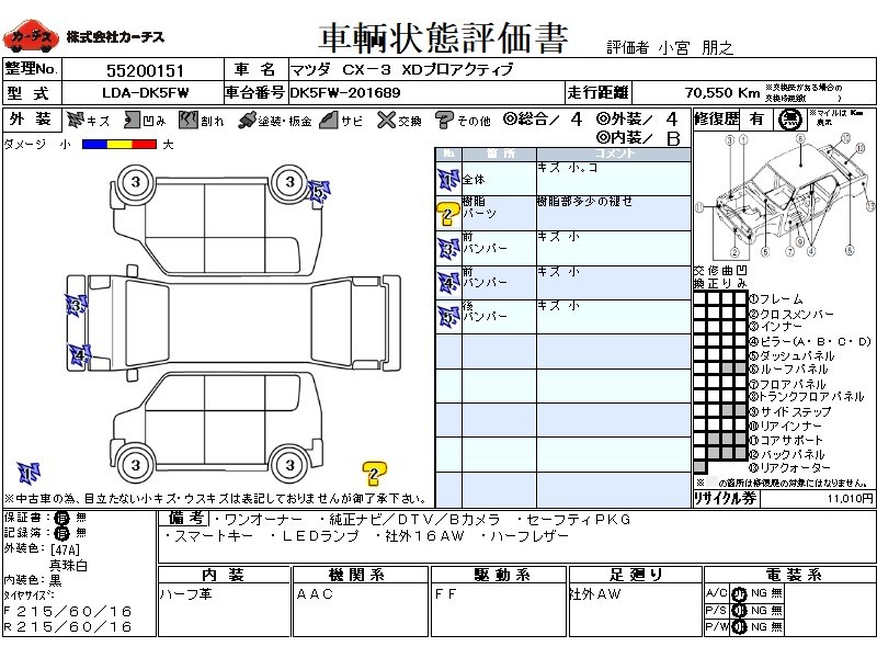 フル装備 / CD / 乗車定員(5人) / 集中ドアロック / エアバッグ / 助手席エアバッグ / サイドエアバッグ / ABS / トラクションコントロール / クルーズコントロール / カーナビゲーション(オンダッシュ,SSD) / 地デジTV / バックカメラ / アルミホイール(社外)(16インチ) / ハーフレザーシート / スマートキー / ハイマウントストップランプ /