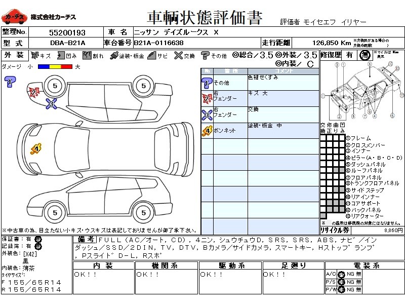 | 法定点検整備 | あり 契約後、納車までに実施 |