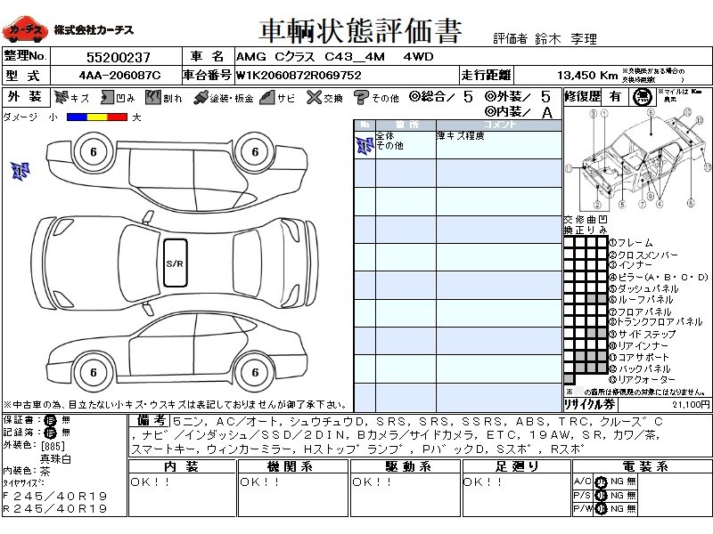乗車定員(5人) / エアコン(オート) / パワーステアリング / パワーウィンドウ / 集中ドアロック / エアバッグ / 助手席エアバッグ / サイドエアバッグ / ABS / トラクションコントロール / クルーズコントロール / カーナビゲーション(インダッシュ,SSD,2DIN) / バックカメラ(サイドカメラ) / ETC / アルミホイール(19インチ) / サンルーフ / 革シート(茶) / スマートキー / ウインカーミラー / ハイマウントストップランプ / パワーバックドア / サイドスポイラー / リアスポイラー /