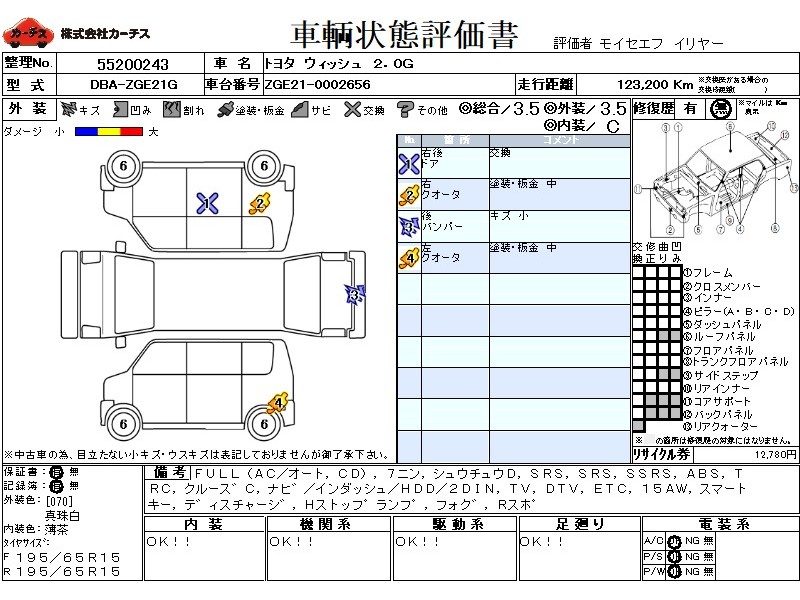 フル装備 / CD / 乗車定員(7人) / 集中ドアロック / エアバッグ / 助手席エアバッグ / サイドエアバッグ / ABS / トラクションコントロール / クルーズコントロール / カーナビゲーション(インダッシュ,HDD,2DIN) / テレビ(アナログ) / 地デジTV / ETC / アルミホイール(15インチ) / スマートキー / ディスチャージ / ハイマウントストップランプ / フォグランプ / リアスポイラー /