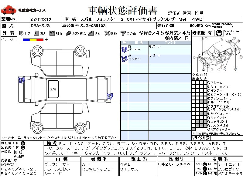 フル装備 / CD / 乗車定員(5人) / 集中ドアロック / エアバッグ / 助手席エアバッグ / サイドエアバッグ / ABS / トラクションコントロール / クルーズコントロール / カーナビゲーション(インダッシュ,SSD,2DIN) / 地デジTV / ETC / アルミホイール(社外)(20インチ) / サンルーフ / 革シート(茶) / スマートキー / ウインカーミラー / ハイマウントストップランプ / パワーバックドア / フォグランプ / フロントスポイラー / リアスポイラー / リアアンダースポイラー / マフラー(社外) /