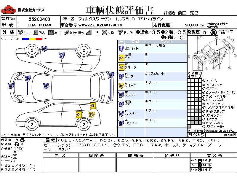 フル装備 / CD(社外) / 乗車定員(5人) / エアバッグ / 助手席エアバッグ / サイドエアバッグ / ABS / トラクションコントロール / カーナビゲーション(社外)(インダッシュ,SSD,2DIN) / テレビ(社外) / 地デジTV(社外) / ETC / アルミホイール(17インチ) / キーレスエントリー / ディスチャージ / フォグランプ / リアスポイラー /