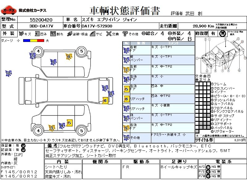 フル装備 / CD(社外) / 乗車定員(4人) / エアバッグ / 助手席エアバッグ / ABS / カーナビゲーション(社外)(SSD) / テレビ(社外) / 地デジTV(社外) / ETC(社外) / キーレスエントリー / ディスチャージ / ハイマウントストップランプ /