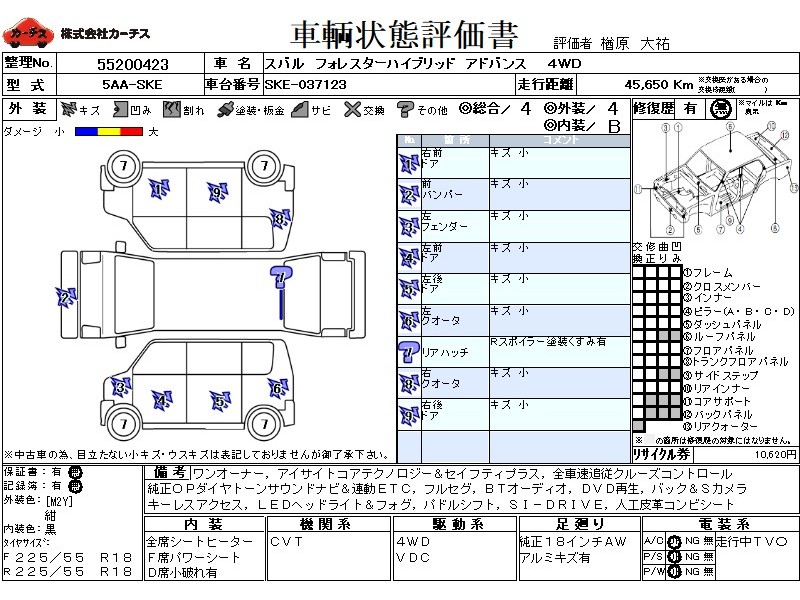 アイサイトコアテクノロジー&セイフティプラス 全車速追従機能付クルーズコントロール RAB 純正OPダイヤトーンサウンドナビ フルセグTV BTオーディオ DVD再生 バック&サイドカメラ キーレスアクセス LEDヘッドライト&LEDフォグ 人工皮革コンビシート 全席シートヒーター F席パワーシート パドルシフト SI-DRIVE 禁煙車