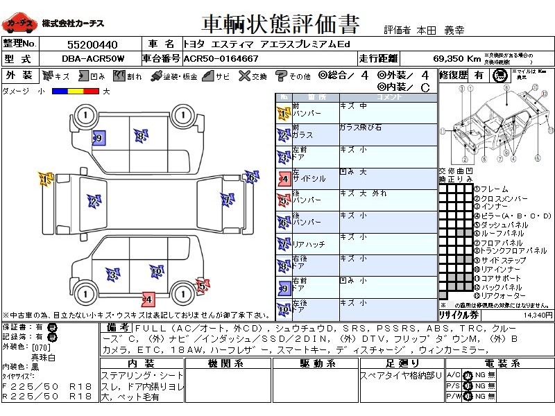 フル装備 / CD(社外) / 集中ドアロック / エアバッグ / 助手席エアバッグ / ABS / トラクションコントロール / クルーズコントロール / カーナビゲーション(社外)(インダッシュ,SSD,2DIN) / 地デジTV(社外) / フリップダウンモニタ / ETC / アルミホイール(18インチ) / ハーフレザーシート / スマートキー / ディスチャージ / ウインカーミラー / ハイマウントストップランプ / パワースライドドア / フォグランプ / サイドスポイラー / リアスポイラー /