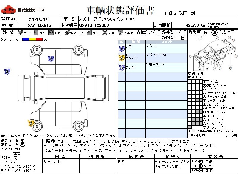 フル装備 / CD / 乗車定員(4人) / エアバッグ / 助手席エアバッグ / サイドエアバッグ / ABS / トラクションコントロール / カーナビゲーション(SSD) / テレビ(アナログ) / 地デジTV / バックカメラ / ETC / スマートキー / ハイマウントストップランプ / パワースライドドア /