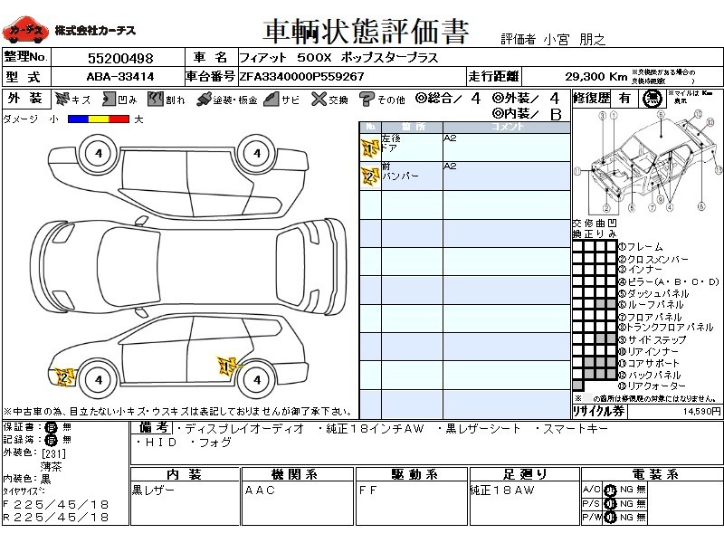 乗車定員(5人) / エアコン(オート) / パワーステアリング / パワーウィンドウ / 集中ドアロック / エアバッグ / 助手席エアバッグ / サイドエアバッグ / ABS / トラクションコントロール / クルーズコントロール / バックカメラ / アルミホイール(18インチ) / 革シート(黒) / スマートキー / ディスチャージ / ハイマウントストップランプ / フォグランプ / リアスポイラー /