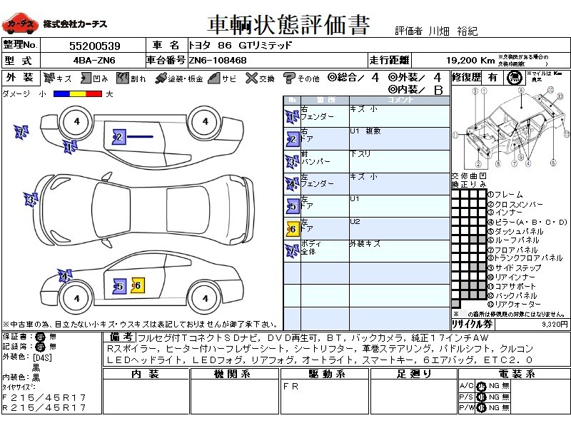 フル装備 / CD / 乗車定員(4人) / エアバッグ / 助手席エアバッグ / サイドエアバッグ / ABS / クルーズコントロール / カーナビゲーション(SSD) / テレビ(アナログ) / 地デジTV / バックカメラ / ETC / アルミホイール(17インチ) / ハーフレザーシート / スマートキー / ハイマウントストップランプ / フォグランプ / リアスポイラー /