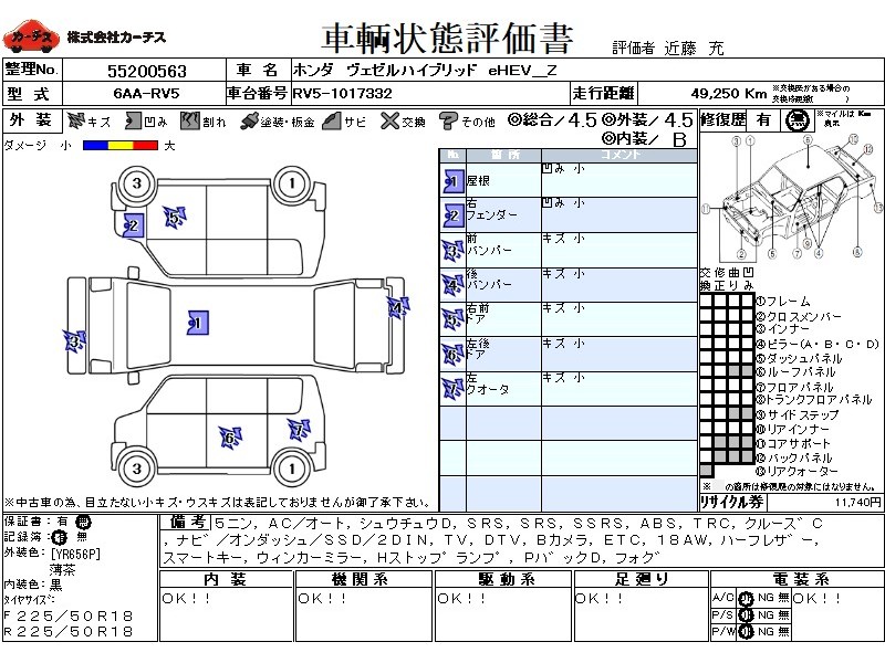 乗車定員(5人) / エアコン(オート) / パワーステアリング / パワーウィンドウ / 集中ドアロック / エアバッグ / 助手席エアバッグ / サイドエアバッグ / ABS / トラクションコントロール / クルーズコントロール / カーナビゲーション(オンダッシュ,SSD,2DIN) / テレビ(アナログ) / 地デジTV / バックカメラ / ETC / アルミホイール(18インチ) / ハーフレザーシート / スマートキー / ウインカーミラー / ハイマウントストップランプ / パワーバックドア / フォグランプ /
