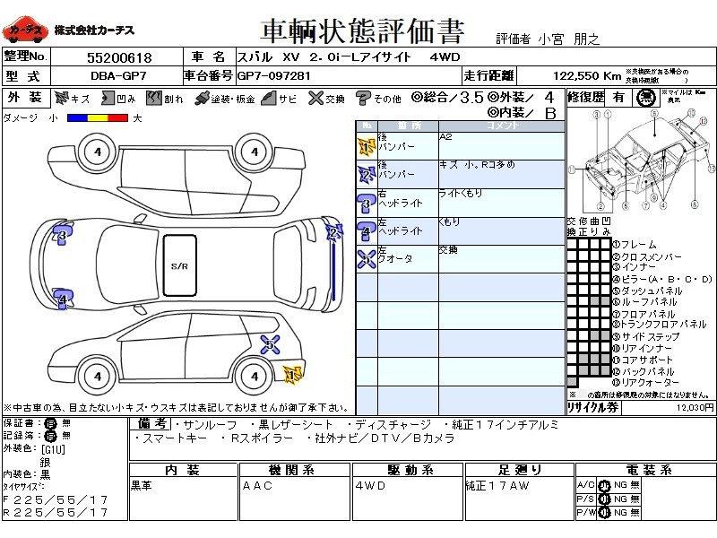 フル装備 / CD(社外) / 乗車定員(5人) / 集中ドアロック / エアバッグ / 助手席エアバッグ / サイドエアバッグ / ABS / トラクションコントロール / クルーズコントロール / カーナビゲーション(社外)(インダッシュ,SSD,2DIN) / 地デジTV(社外) / ETC(社外) / アルミホイール(17インチ) / サンルーフ / 革シート(黒) / スマートキー / ディスチャージ / ウインカーミラー / ハイマウントストップランプ / リアスポイラー /