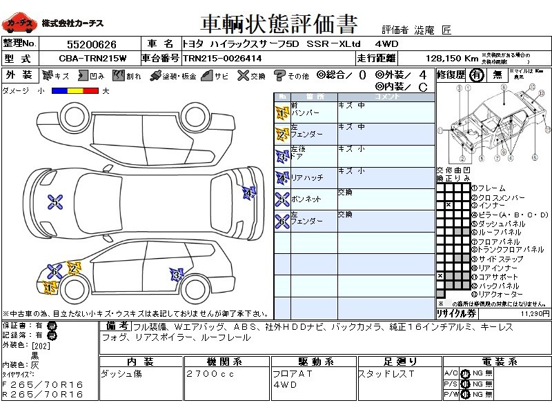 フル装備 / CD(社外) / 乗車定員(5人) / 集中ドアロック / エアバッグ / 助手席エアバッグ / ABS / カーナビゲーション(社外)(インダッシュ,HDD,2DIN) / ETC(社外) / アルミホイール(15インチ) / キーレスエントリー / ハイマウントストップランプ / フォグランプ / ルーフレール / リアスポイラー /