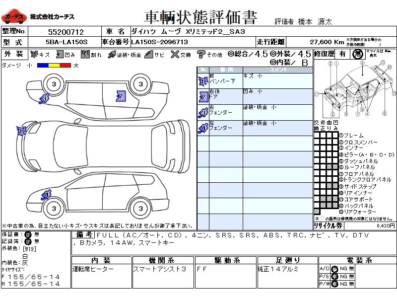 ワンオーナー車。特別仕様車。スマートアシスト3、純正ナビTV&バックカメラ、スマートキー2個、ブラックインテリアパック、LEDヘッドライト、運転席ヒーター、純正ドラレコ、純正14アルミ