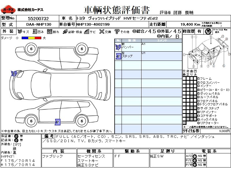 フル装備 / CD / 乗車定員(5人) / エアバッグ / 助手席エアバッグ / ABS / トラクションコントロール / カーナビゲーション(インダッシュ,SSD,2DIN) / テレビ(アナログ) / バックカメラ / ETC(社外) / スマートキー /