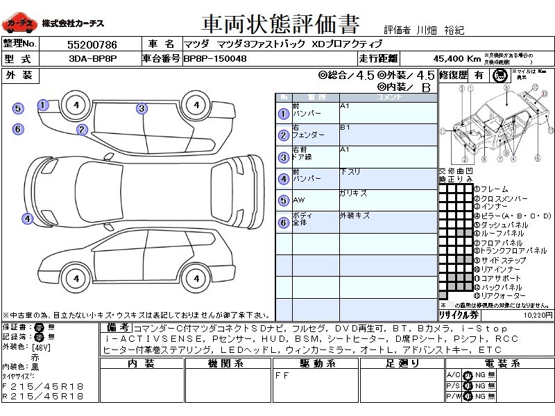 フル装備 / CD / 乗車定員(5人) / エアバッグ / 助手席エアバッグ / サイドエアバッグ / ABS / クルーズコントロール / カーナビゲーション(SSD) / テレビ(アナログ) / 地デジTV / バックカメラ / ETC / アルミホイール(18インチ) / スマートキー / ウインカーミラー / ハイマウントストップランプ / リアスポイラー /