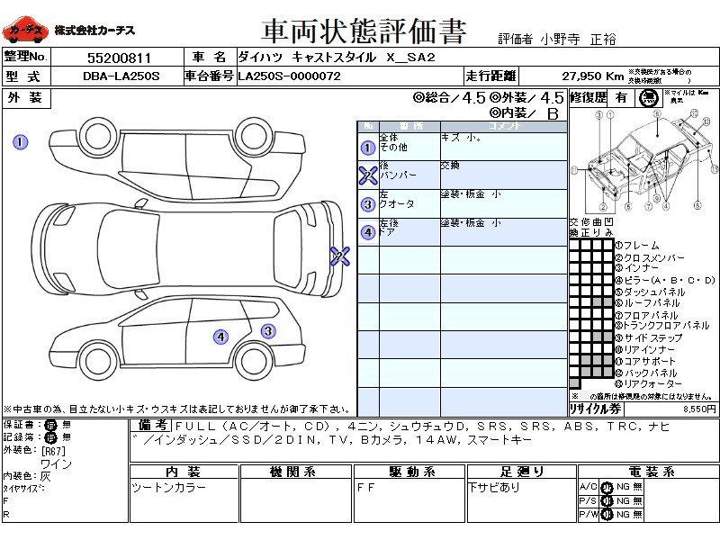 | 法定点検整備 | あり 契約後、納車までに実施 |