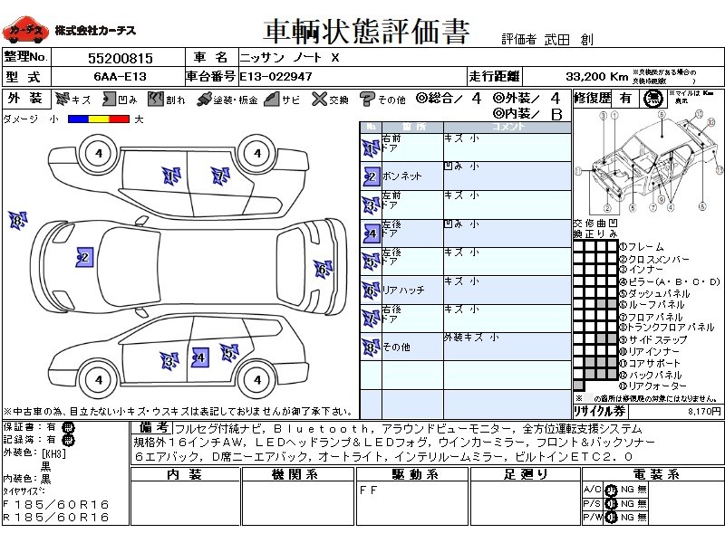 乗車定員(5人) / エアコン / パワーステアリング / パワーウィンドウ / エアバッグ / 助手席エアバッグ / サイドエアバッグ / ABS / カーナビゲーション(SSD) / テレビ(アナログ) / 地デジTV / バックカメラ / ETC / アルミホイール(16インチ) / スマートキー / ウインカーミラー / ハイマウントストップランプ / フォグランプ / リアスポイラー /