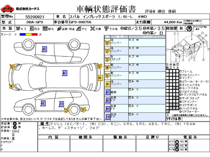 フル装備 / CD(社外) / 乗車定員(5人) / エアバッグ / 助手席エアバッグ / ABS / トラクションコントロール / アルミホイール(社外)(15インチ) / キーレスエントリー / ディスチャージ / フォグランプ /