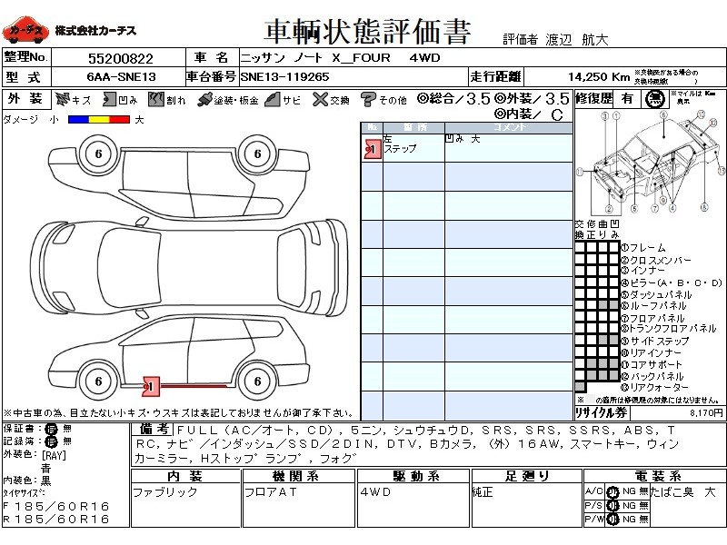 フル装備 / CD / 乗車定員(5人) / 集中ドアロック / エアバッグ / 助手席エアバッグ / サイドエアバッグ / ABS / トラクションコントロール / カーナビゲーション(インダッシュ,SSD,2DIN) / 地デジTV / バックカメラ / ETC(社外) / アルミホイール(社外)(16インチ) / スマートキー / ウインカーミラー / ハイマウントストップランプ / フォグランプ /