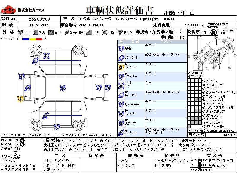アイドリングストップ!アイサイト3!純正ナビ&フルセグTV&DVD&BT&バックカメラ!LEDヘッドライト!オートライト!純正アルミ!前席パワーシート!パドルシフト!ETC!STIフロントリップ&サイドエアロ!