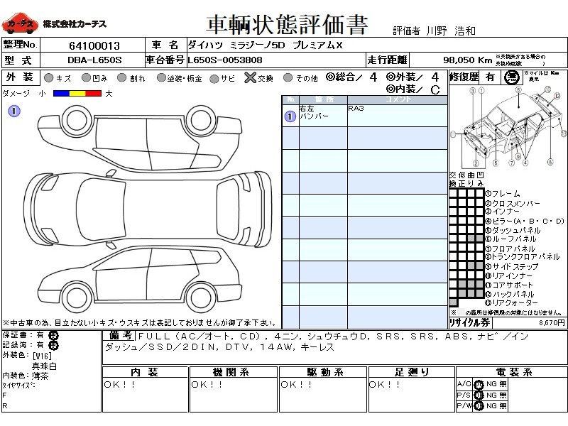 | 外装評価 | 4 |
