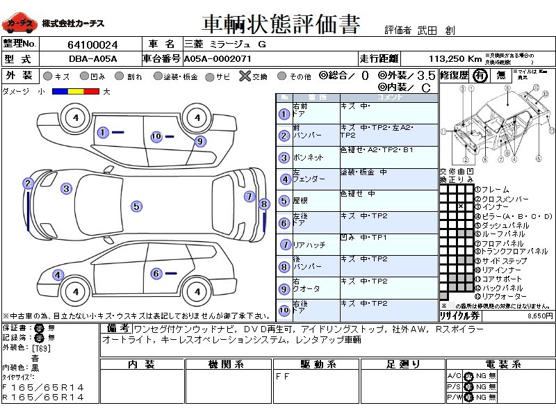 フル装備 / CD(社外) / 乗車定員(5人) / エアバッグ / 助手席エアバッグ / ABS / カーナビゲーション(社外)(SSD) / テレビ(社外) / 地デジTV(社外) / アルミホイール(社外)(14インチ) / スマートキー / ハイマウントストップランプ / リアスポイラー /