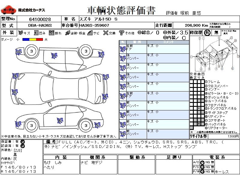 フル装備 / CD(社外) / 乗車定員(4人) / 集中ドアロック / エアバッグ / 助手席エアバッグ / ABS / トラクションコントロール / カーナビゲーション(社外)(インダッシュ,SSD,2DIN) / テレビ(社外) / 地デジTV(社外) / キーレスエントリー / ハイマウントストップランプ /