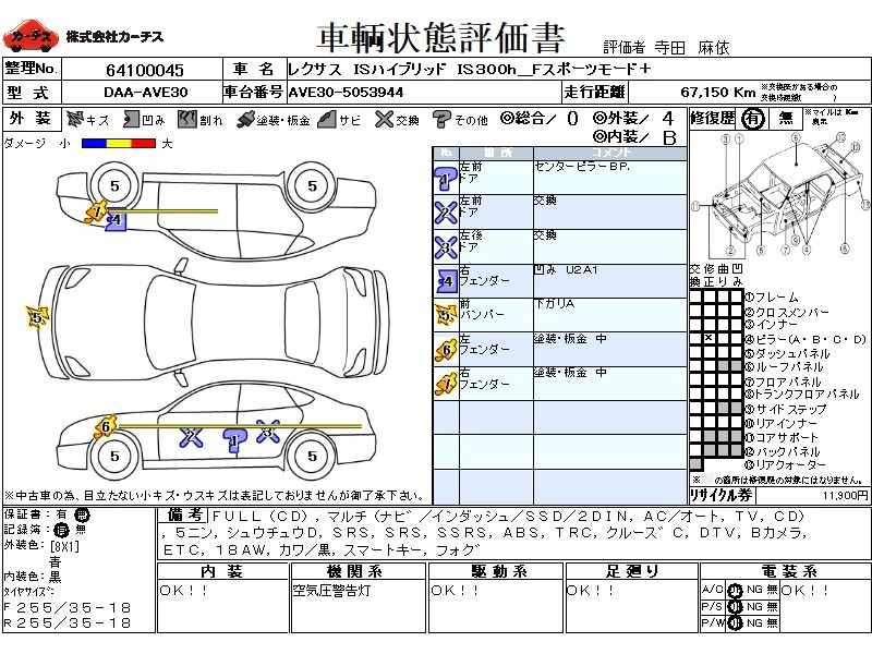 フル装備 / CD / マルチ(ナビ) / エアコン(オート) / テレビ(アナログ) / 乗車定員(5人) / 集中ドアロック / エアバッグ / 助手席エアバッグ / サイドエアバッグ / ABS / トラクションコントロール / クルーズコントロール / 地デジTV / バックカメラ / ETC / アルミホイール(18インチ) / 革シート(黒) / スマートキー / フォグランプ /