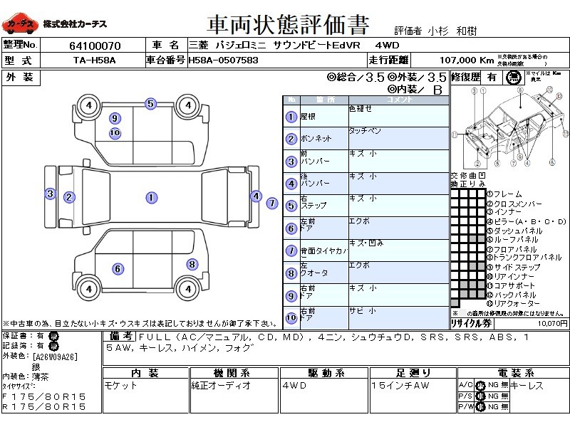 フル装備 / CD / MD / 乗車定員(4人) / 集中ドアロック / エアバッグ / 助手席エアバッグ / ABS / アルミホイール(15インチ) / キーレスエントリー / 背面タイヤ / フォグランプ /