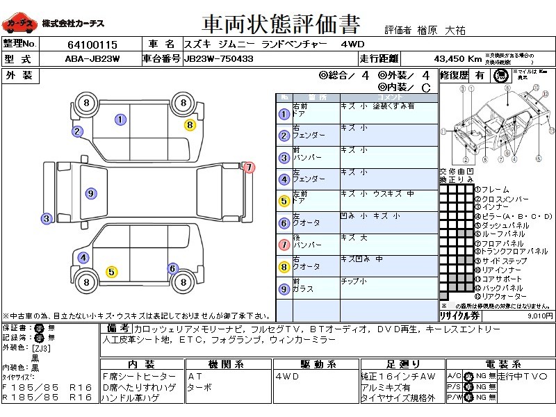 カロッツェリアメモリーナビ フルセグTV BTオーディオ DVD再生 キーレスエントリー 純正16インチアルミ 人工皮革シート地 F席シートヒーター フォグランプ ETC ウィンカーミラー ターボ