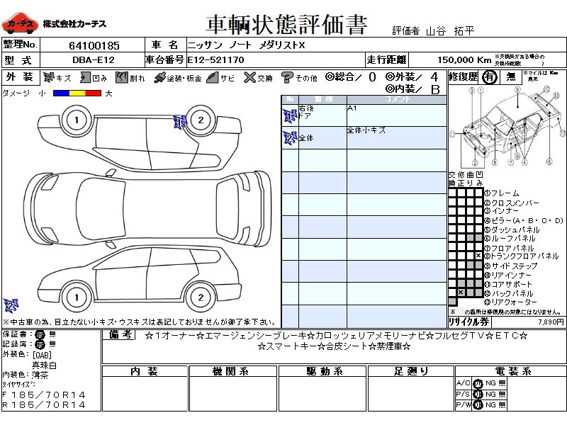 | 法定点検整備 | あり 契約後、納車までに実施 |