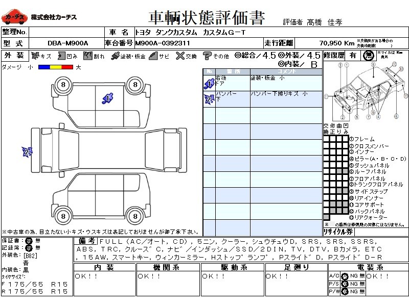 フル装備 / CD / 乗車定員(5人) / クーラー / 集中ドアロック / エアバッグ / 助手席エアバッグ / サイドエアバッグ / ABS / トラクションコントロール / クルーズコントロール / カーナビゲーション(インダッシュ,SSD,2DIN) / テレビ(アナログ) / 地デジTV / バックカメラ / ETC / アルミホイール(15インチ) / スマートキー / ウインカーミラー / ハイマウントストップランプ / パワースライドドア / フォグランプ /
