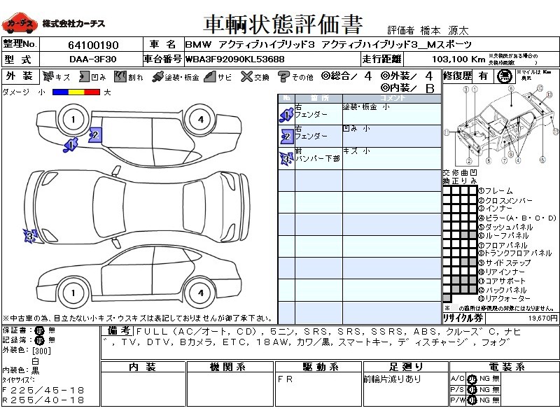 パワフルさと経済性を両立したBMWアクティブハイブリッド3です。こちらは非常にきれいな外装でオススメです。