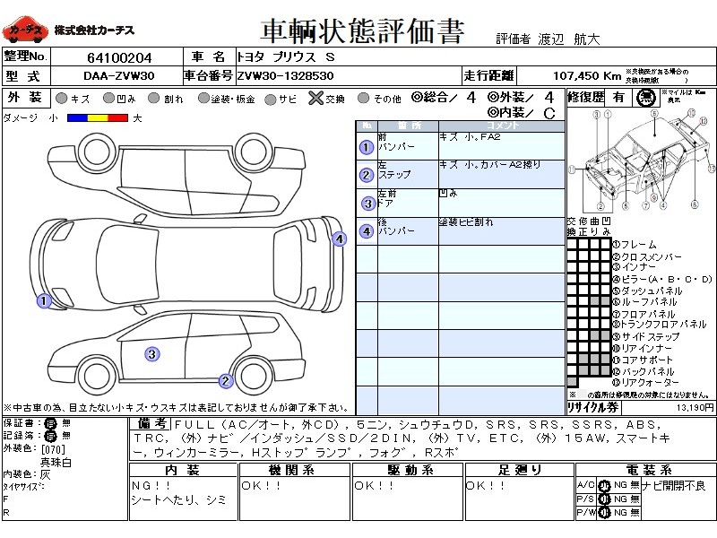 フル装備 / CD(社外) / 乗車定員(5人) / 集中ドアロック / エアバッグ / 助手席エアバッグ / サイドエアバッグ / ABS / トラクションコントロール / カーナビゲーション(社外)(インダッシュ,SSD,2DIN) / テレビ(社外) / 地デジTV(社外) / ETC / アルミホイール(社外)(15インチ) / スマートキー / ウインカーミラー / ハイマウントストップランプ / フォグランプ / リアスポイラー /