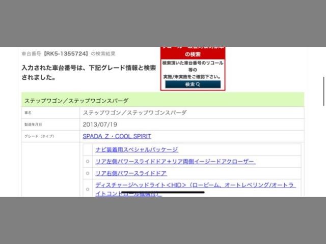 フル装備 / CD(社外) / 乗車定員(8人) / 集中ドアロック / エアバッグ / 助手席エアバッグ / ABS / トラクションコントロール / クルーズコントロール / カーナビゲーション(インダッシュ,SSD,2DIN) / 地デジTV / ETC / アルミホイール(17インチ) / ハーフレザーシート / スマートキー / ディスチャージ / ウインカーミラー / ハイマウントストップランプ / パワースライドドア / フォグランプ / サイドスポイラー / リアスポイラー /