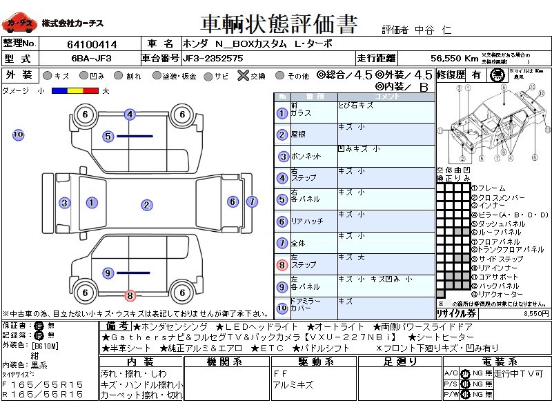 フル装備 / CD / 乗車定員(4人) / 集中ドアロック / エアバッグ / 助手席エアバッグ / サイドエアバッグ / ABS / トラクションコントロール / クルーズコントロール / カーナビゲーション(インダッシュ,SSD,2DIN) / 地デジTV / バックカメラ / ETC / アルミホイール(15インチ) / ハーフレザーシート / スマートキー / ウインカーミラー / ハイマウントストップランプ / パワースライドドア / フォグランプ / サイドスポイラー / リアスポイラー /