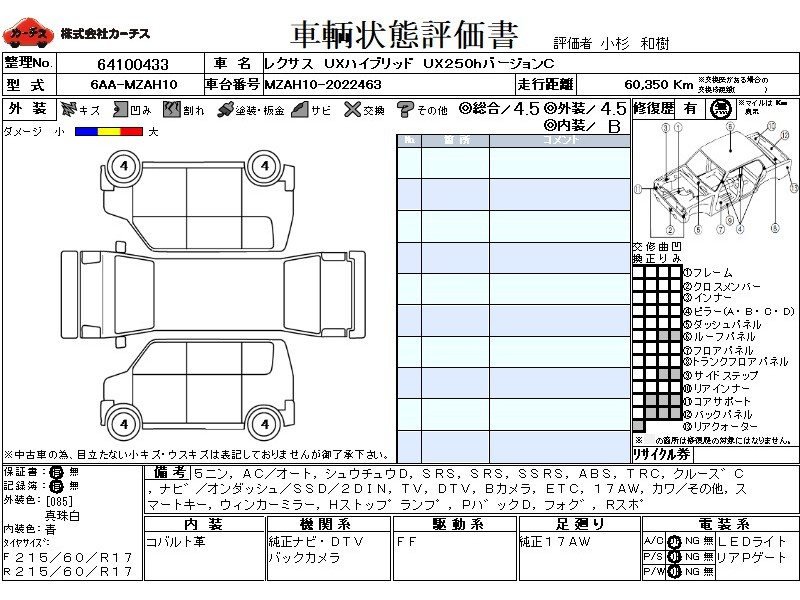 乗車定員(5人) / エアコン(オート) / パワーステアリング / パワーウィンドウ / 集中ドアロック / エアバッグ / 助手席エアバッグ / サイドエアバッグ / ABS / トラクションコントロール / クルーズコントロール / カーナビゲーション(オンダッシュ,SSD,2DIN) / テレビ(アナログ) / 地デジTV / バックカメラ / ETC / アルミホイール(17インチ) / 革シート(その他) / スマートキー / ウインカーミラー / ハイマウントストップランプ / パワーバックドア / フォグランプ / リアスポイラー /