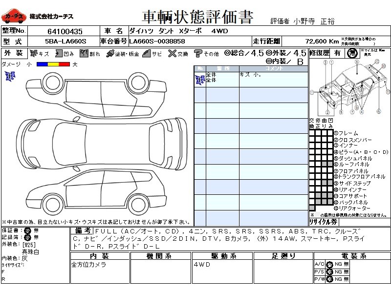 フル装備 / CD / 乗車定員(4人) / エアバッグ / 助手席エアバッグ / サイドエアバッグ / ABS / トラクションコントロール / クルーズコントロール / カーナビゲーション(インダッシュ,SSD,2DIN) / 地デジTV / バックカメラ / アルミホイール(社外)(14インチ) / スマートキー / パワースライドドア /