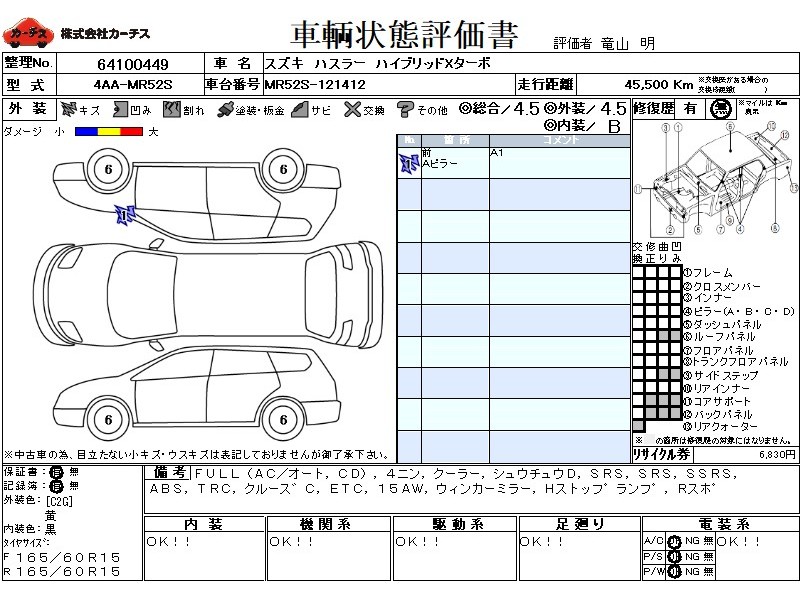 フル装備 / CD / 乗車定員(4人) / クーラー / 集中ドアロック / エアバッグ / 助手席エアバッグ / サイドエアバッグ / ABS / トラクションコントロール / クルーズコントロール / ETC / アルミホイール(15インチ) / ウインカーミラー / ハイマウントストップランプ / リアスポイラー /