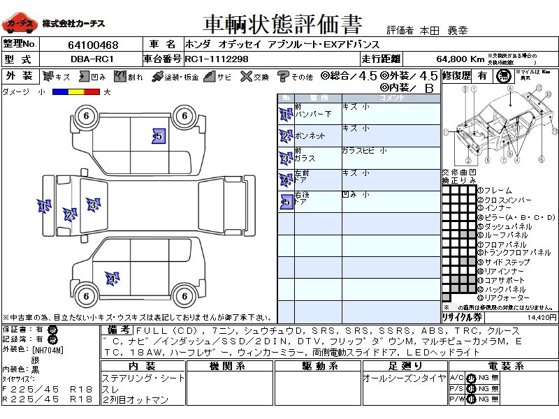 フル装備 / CD / 乗車定員(7人) / 集中ドアロック / エアバッグ / 助手席エアバッグ / サイドエアバッグ / ABS / トラクションコントロール / クルーズコントロール / カーナビゲーション(インダッシュ,SSD,2DIN) / 地デジTV / フリップダウンモニタ / バックカメラ(フロント) / ETC / アルミホイール(18インチ) / ハーフレザーシート / スマートキー / ウインカーミラー / ハイマウントストップランプ / パワースライドドア / フォグランプ / サイドスポイラー / リアスポイラー /