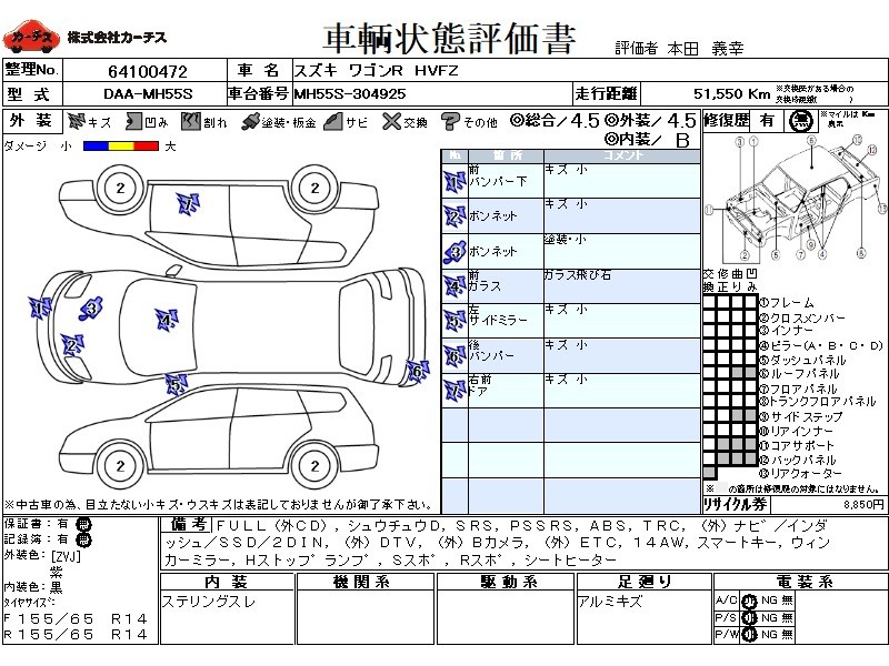 フル装備 / CD(社外) / 集中ドアロック / エアバッグ / 助手席エアバッグ / ABS / トラクションコントロール / カーナビゲーション(社外)(インダッシュ,SSD,2DIN) / テレビ(社外) / 地デジTV(社外) / ETC(社外) / アルミホイール(14インチ) / スマートキー / ウインカーミラー / ハイマウントストップランプ / サイドスポイラー / リアスポイラー /