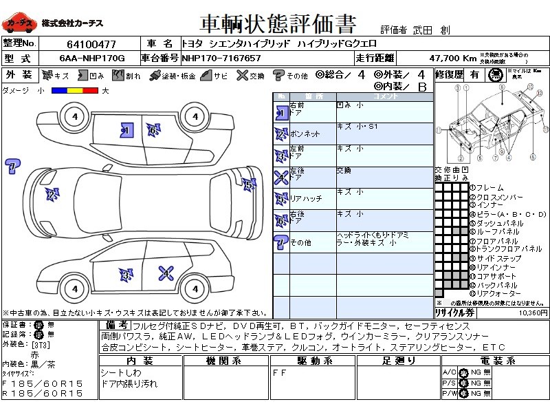 フル装備 / CD / 乗車定員(7人) / エアバッグ / 助手席エアバッグ / ABS / トラクションコントロール / クルーズコントロール / カーナビゲーション(SSD) / テレビ(アナログ) / 地デジTV / バックカメラ / ETC / アルミホイール(15インチ) / スマートキー / ウインカーミラー / ハイマウントストップランプ / パワースライドドア / フォグランプ /