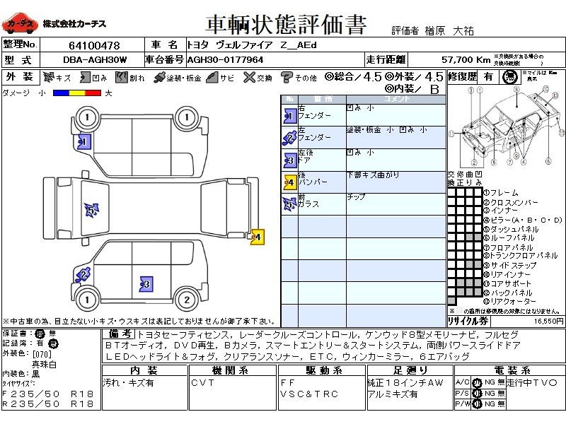 乗車定員(7人) / エアコン(Wエアコン・オート) / CD / エアバッグ / 助手席エアバッグ / サイドエアバッグ / ABS / トラクションコントロール / クルーズコントロール / カーナビゲーション(社外)(インダッシュ,2DIN) / 地デジTV(社外) / ETC(社外) / アルミホイール(18インチ) / スマートキー / ウインカーミラー / パワースライドドア / フォグランプ / リアスポイラー /